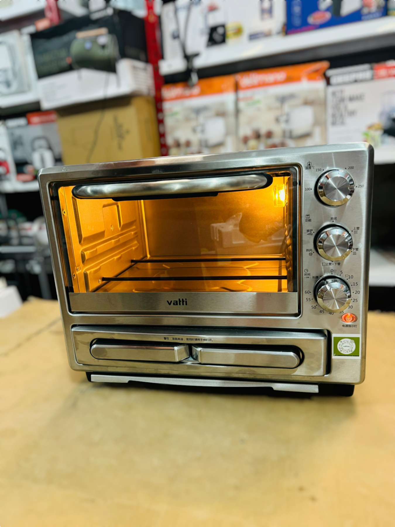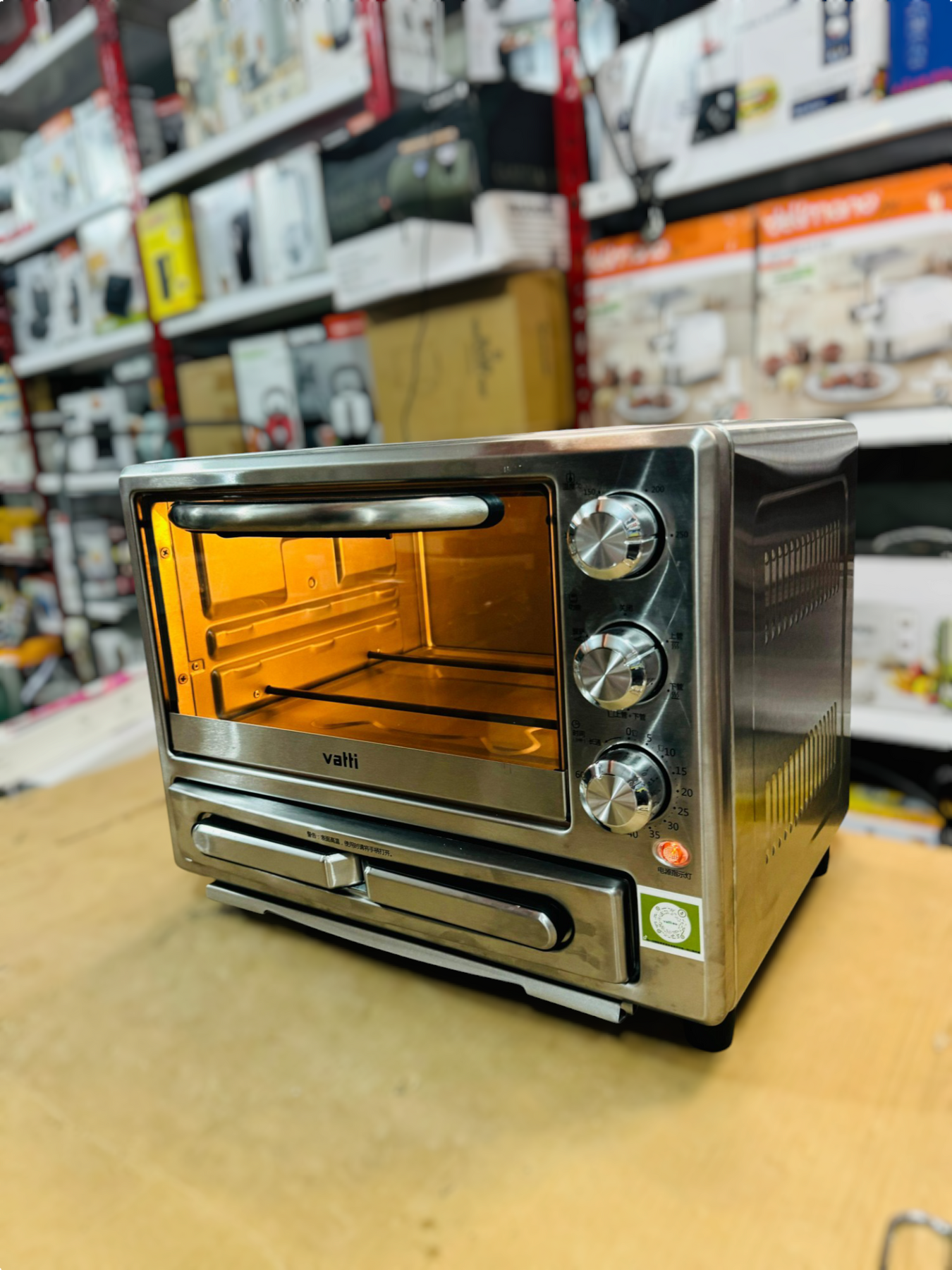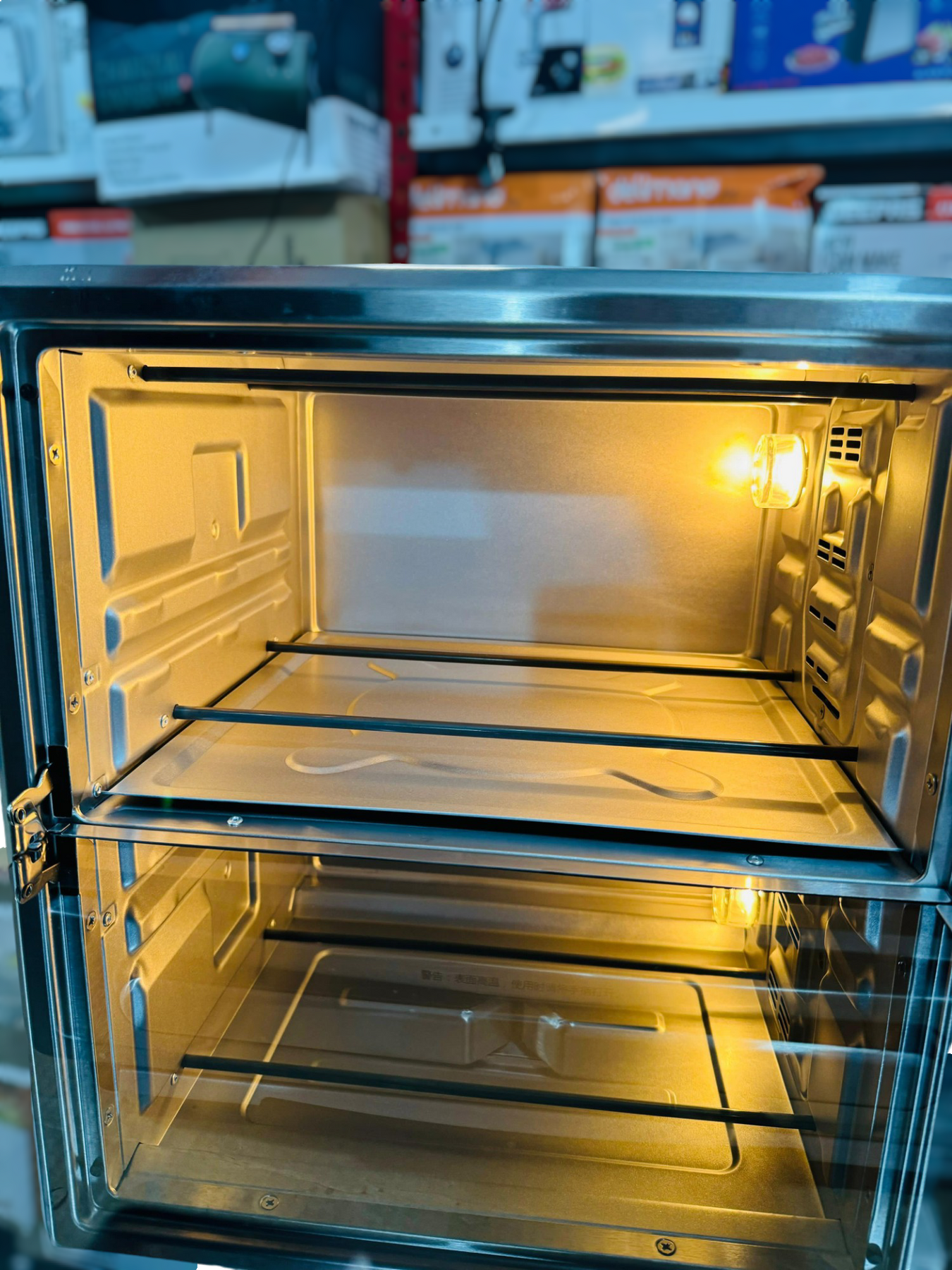 Product name Electric oven color Stainless steel capacity 20L+12 inches Rated power 1400W+1000W Rated voltage 220V Rated frequency 50Hz Power cord length 100cm