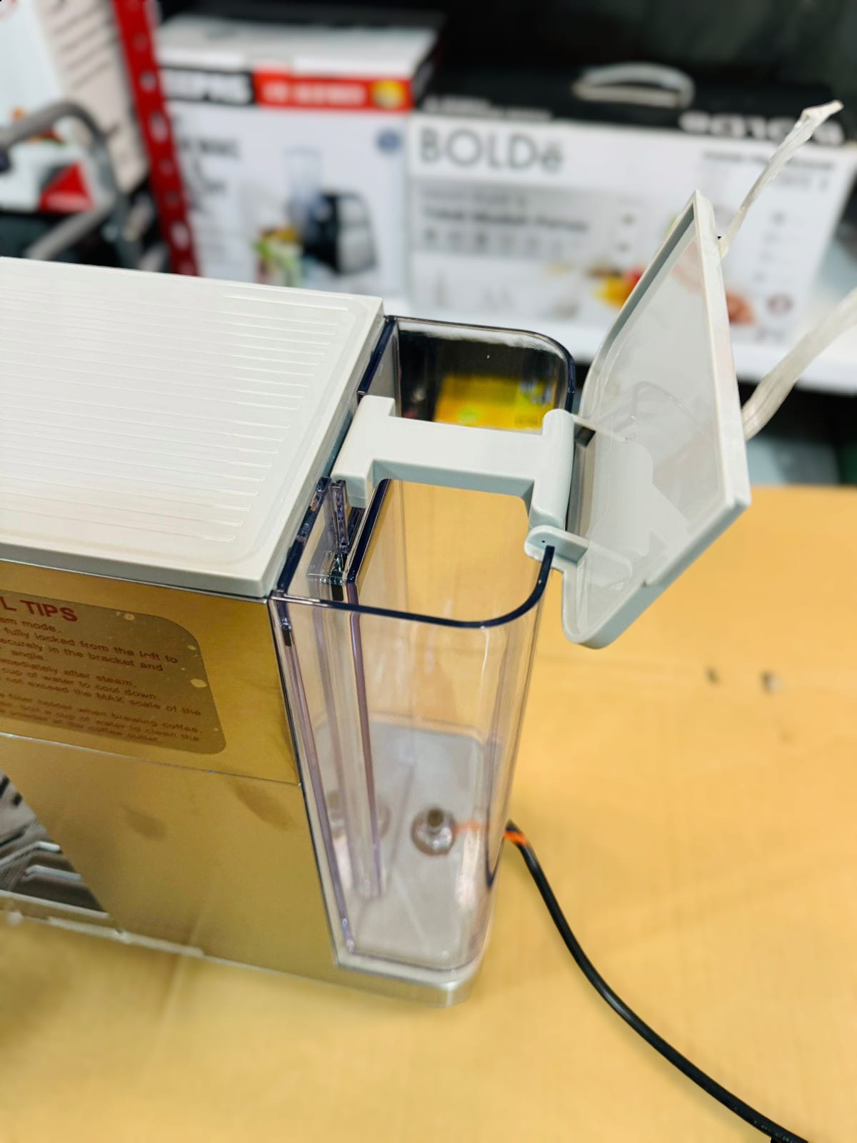 • detachable water tank & adjustable drip tray