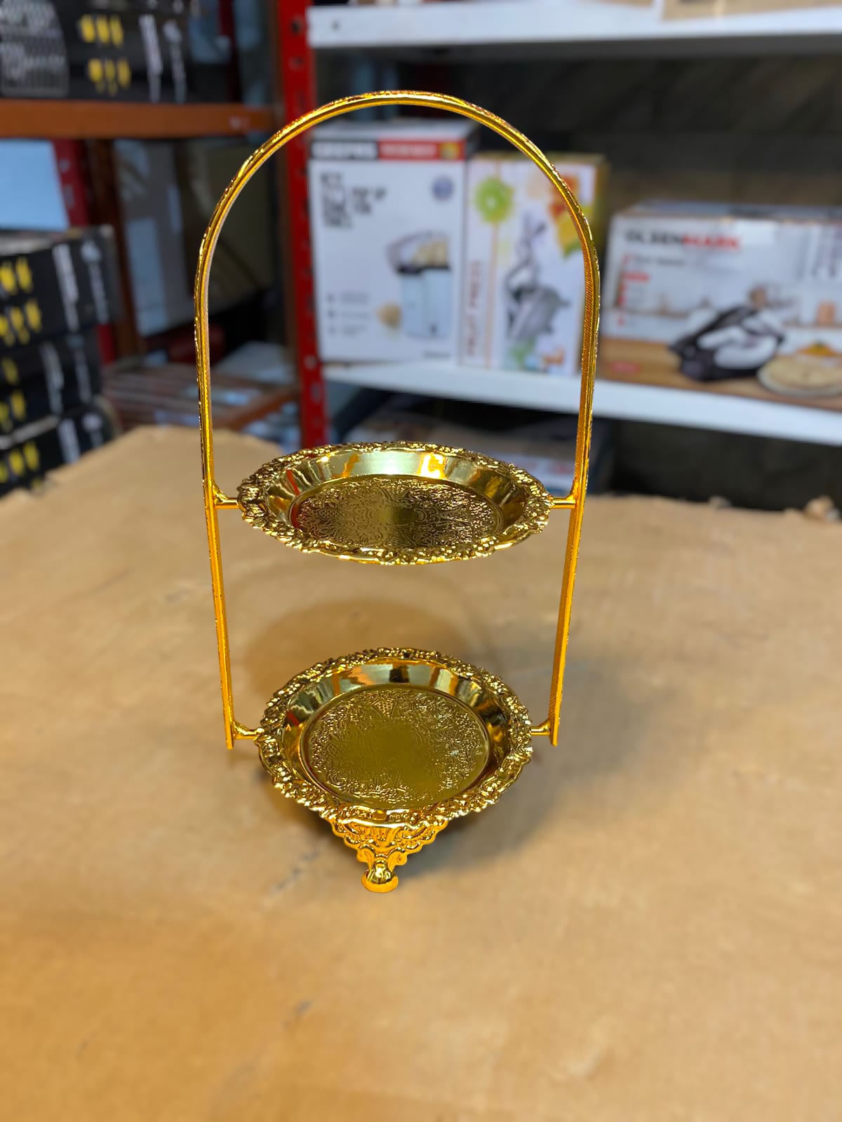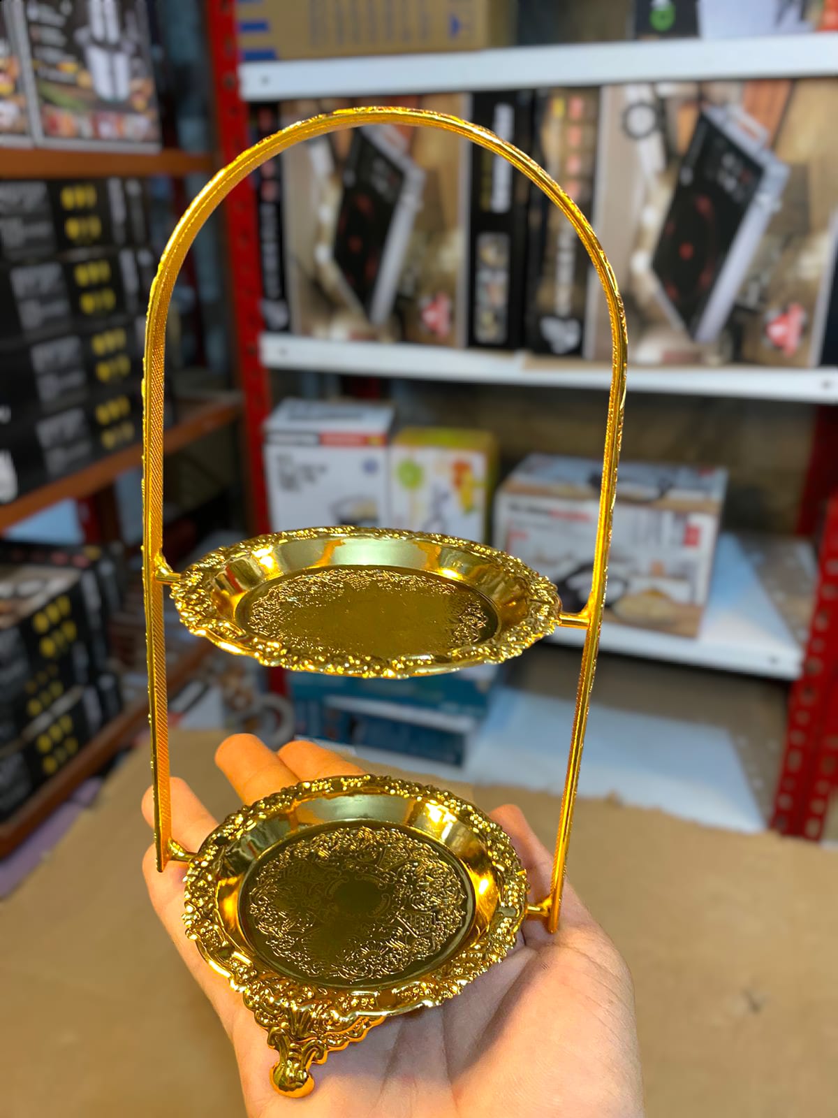 Golden 2 Floor Cake Plate Stand
